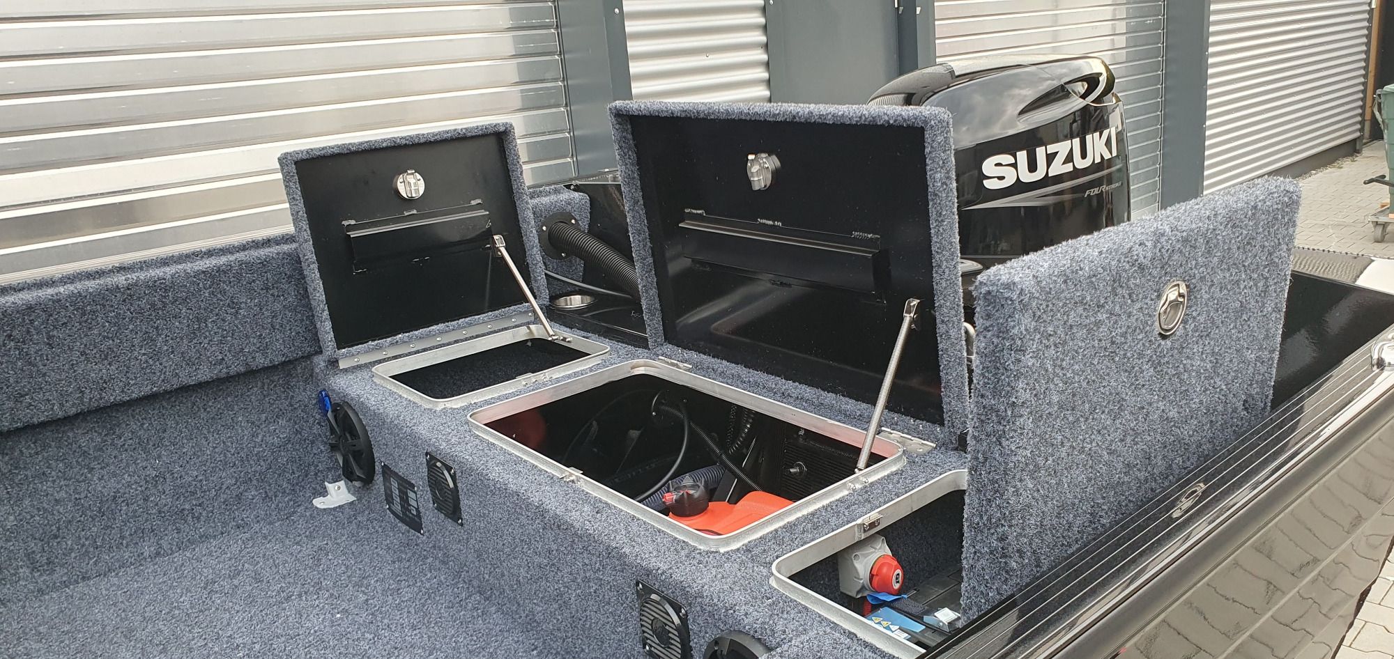 Alle Fächer mit Teppich ausgekleidet, damit wird das Boot leise